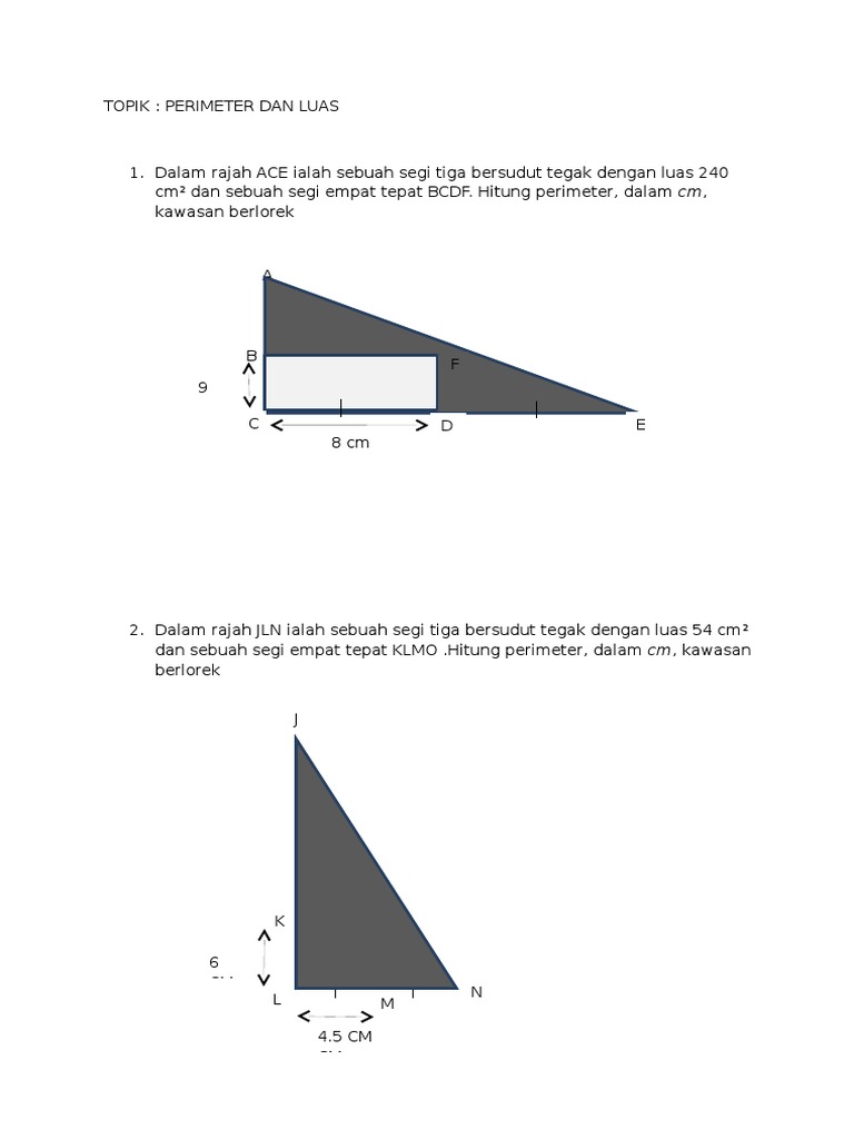 Luas Segi Tiga Bersudut Tegak Worksheet