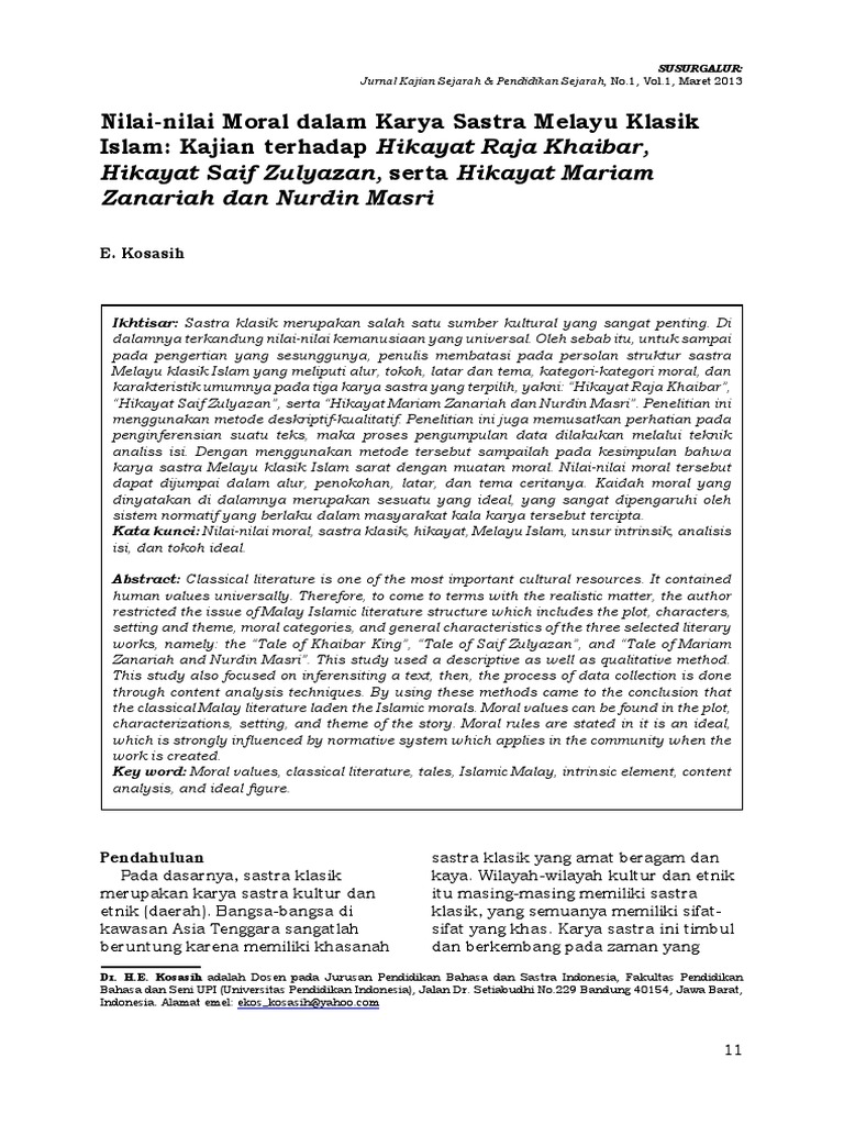 Nilai2 Moral Dlm Karya Sastra Melayu Klasik Islam Pdf Pdf